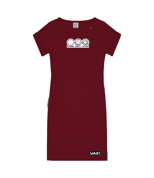Women's dress BASIC with prints for woman with design 1120 BEFORE PARTY AFTER in color DARK RED