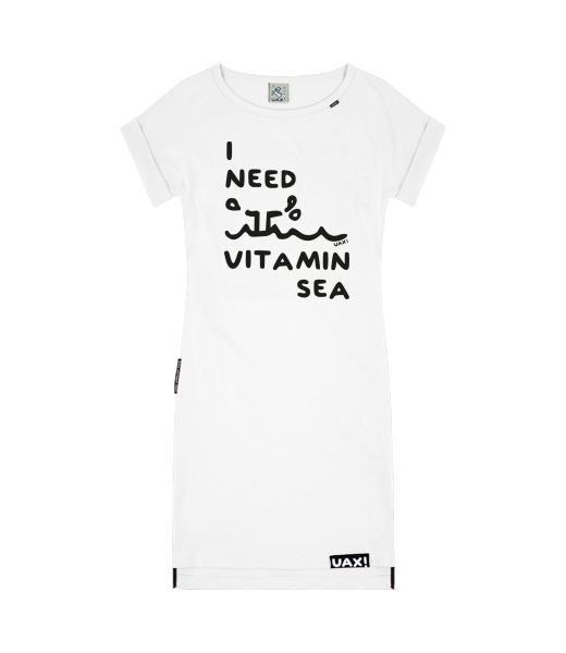 Women's dress BASIC with prints for woman with design 1132 I NEED VITAMIN SEA in color WHITE