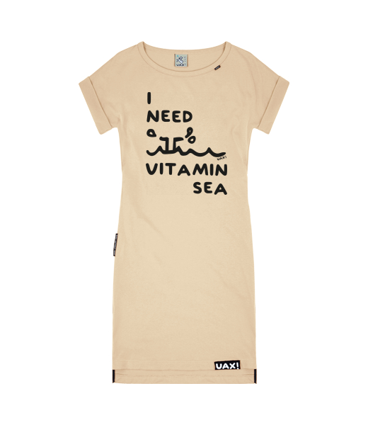 Women's dress BASIC with prints for woman with design 1132 I NEED VITAMIN SEA in color CARAMEL