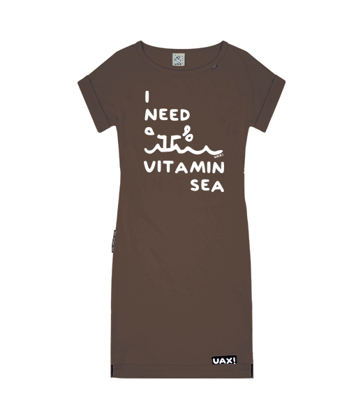 Women's dress BASIC with prints for woman with design 1132 I NEED VITAMIN SEA in color CHESTNUT