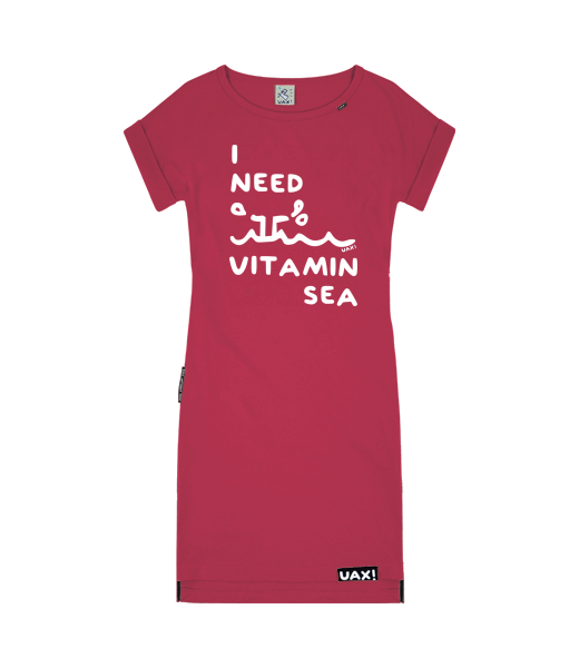 Women's dress BASIC with prints for woman with design 1132 I NEED VITAMIN SEA in color CHILLY PEPPER RED
