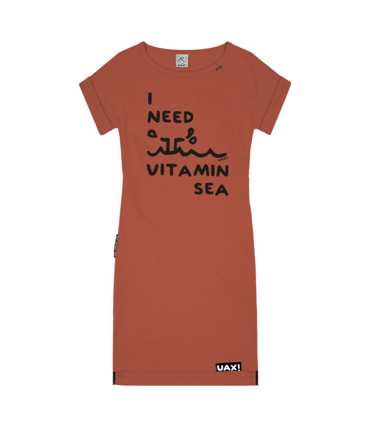 Women's dress BASIC with prints for woman with design 1132 I NEED VITAMIN SEA in color TERRA