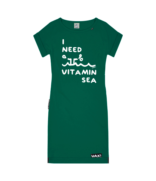 Women's dress BASIC with prints for woman with design 1132 I NEED VITAMIN SEA in color UNIVERSITY GREEN