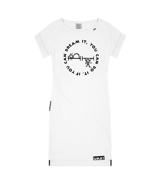 Women's dress BASIC with prints for woman with design 1133 IF YOU CAN DREAM IT in color WHITE
