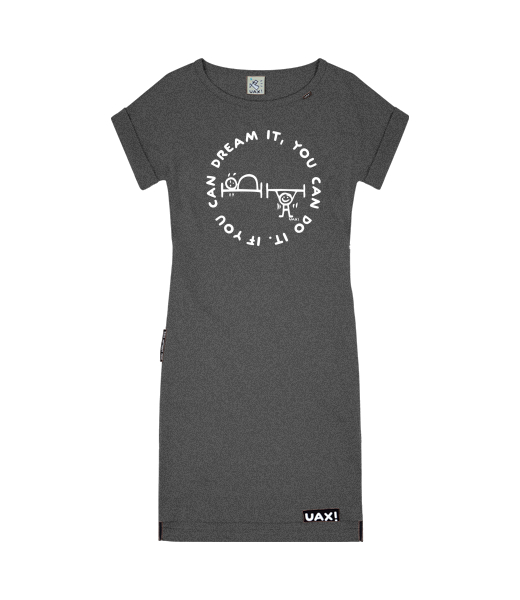 Women's dress BASIC with prints for woman with design 1133 IF YOU CAN DREAM IT in color GRAFIT