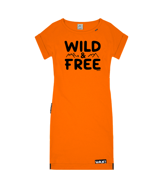 Women's dress BASIC with prints for woman with design 1161 WILD AND FREE in color SIGNAL ORANGE