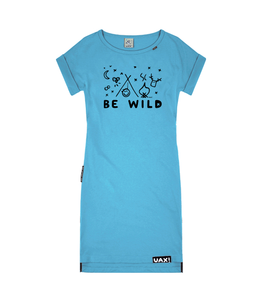 Women's dress BASIC with prints for woman with design 1174 BE WILD in color BLUE ATOLL