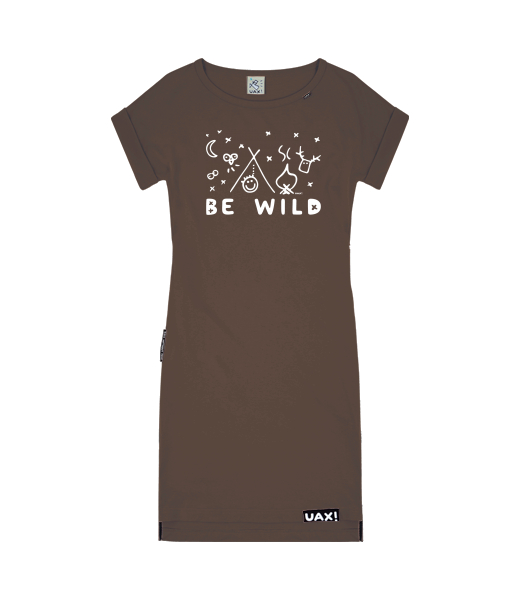 Women's dress BASIC with prints for woman with design 1174 BE WILD in color CHESTNUT