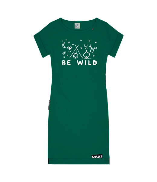 Women's dress BASIC with prints for woman with design 1174 BE WILD in color UNIVERSITY GREEN