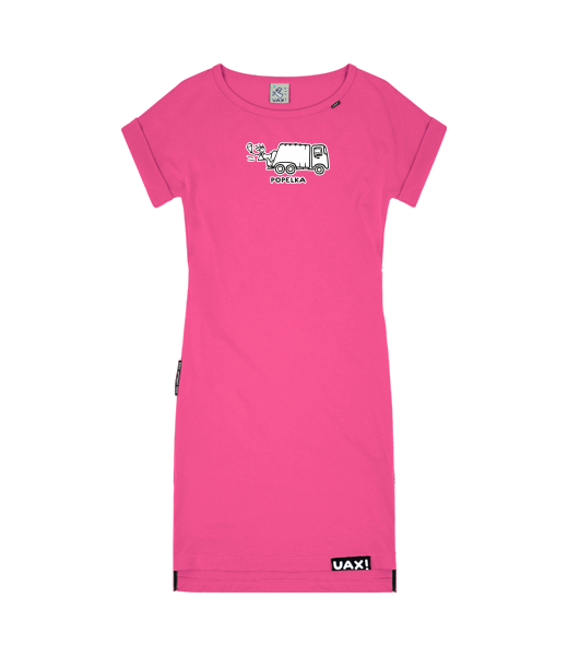 If you're looking for a comfortable women's dress that fits every figure, you've come to the right place. BASIC dresses are picked out to the smallest detail. They have a straight looser cut also in the upper part, so you don't have to worry about sweating in them in the summer. A soft cotton trim is sewn around the neck, decorated with a small woven UAX label. The Folded sleeves on the dress are also looser in the armpits. The dress has deep pockets sewn on both sides, which can reliably fit small items or a larger smartphone. The back part of the dress is extended, the front part is shorter. The dress has slits on the sides and a printed UAX cotton label sewn on the front. Any print can be printed on the dress. Please refer to the size charts when estimating sizes. We sew these CUSTOM dresses only after the order is created, just in time, tailored to you. Choose from 34 color combinations and more than 400 prints.