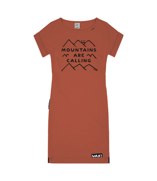 Women's dress BASIC with prints for woman with design 1204 MOUNTAINS ARE CALLING in color TERRA