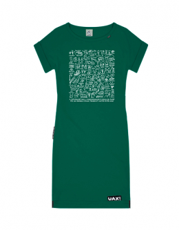If you're looking for a comfortable women's dress that fits every figure, you've come to the right place. BASIC dresses are picked out to the smallest detail. They have a straight looser cut also in the upper part, so you don't have to worry about sweating in them in the summer. A soft cotton trim is sewn around the neck, decorated with a small woven UAX label. The Folded sleeves on the dress are also looser in the armpits. The dress has deep pockets sewn on both sides, which can reliably fit small items or a larger smartphone. The back part of the dress is extended, the front part is shorter. The dress has slits on the sides and a printed UAX cotton label sewn on the front. Any print can be printed on the dress. Please refer to the size charts when estimating sizes. We sew these CUSTOM dresses only after the order is created, just in time, tailored to you. Choose from 34 color combinations and more than 400 prints.