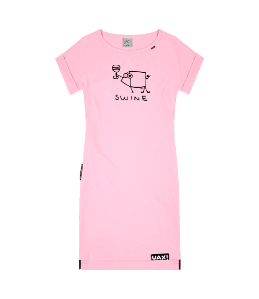 Women's dress BASIC with prints for woman with design 1323 SWINE in color BABY PINK