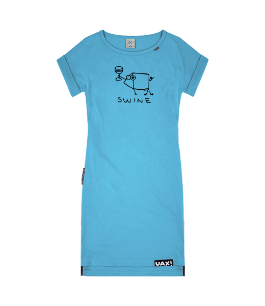 Women's dress BASIC with prints for woman with design 1323 SWINE in color BLUE ATOLL