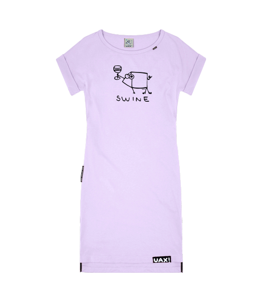 Women's dress BASIC with prints for woman with design 1323 SWINE in color LAVENDER