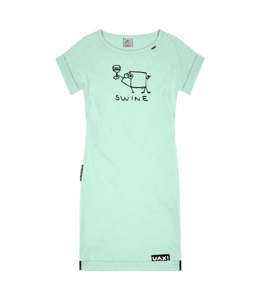 Women's dress BASIC with prints for woman with design 1323 SWINE in color MINT
