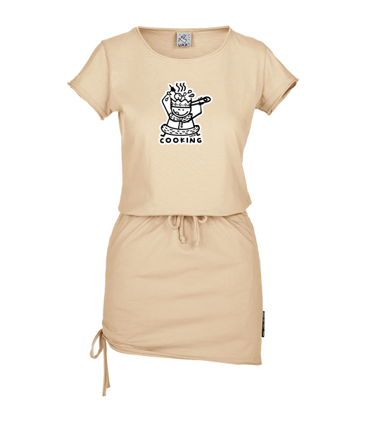 Women's dress URBAN with original prints for woman with design 1117 COOKING in color CARAMEL