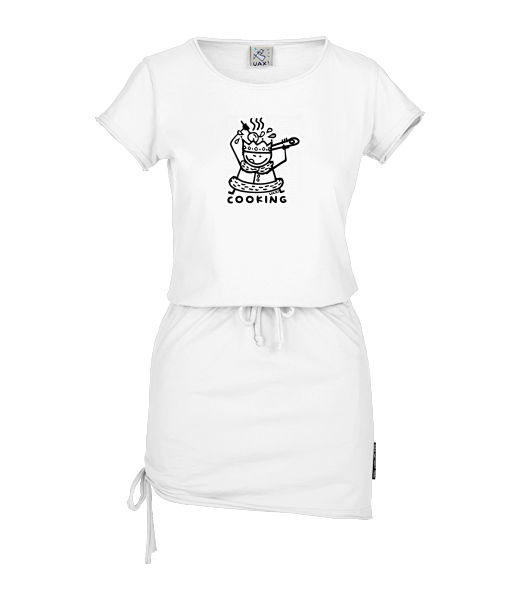 Women's dress URBAN with original prints for woman with design 1117 COOKING in color WHITE