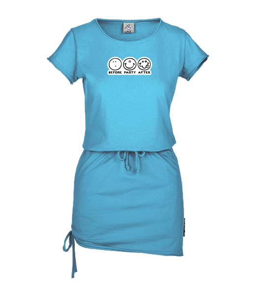 Women's dress URBAN with original prints for woman with design 1120 BEFORE PARTY AFTER in color BLUE ATOLL