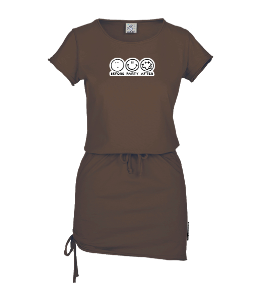 Women's dress URBAN with original prints for woman with design 1120 BEFORE PARTY AFTER in color CHESTNUT