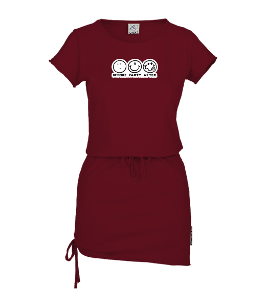 Women's dress URBAN with original prints for woman with design 1120 BEFORE PARTY AFTER in color DARK RED