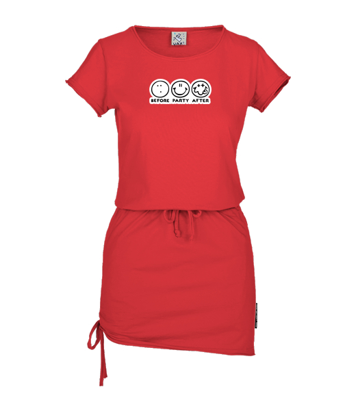 Women's dress URBAN with original prints for woman with design 1120 BEFORE PARTY AFTER in color RED