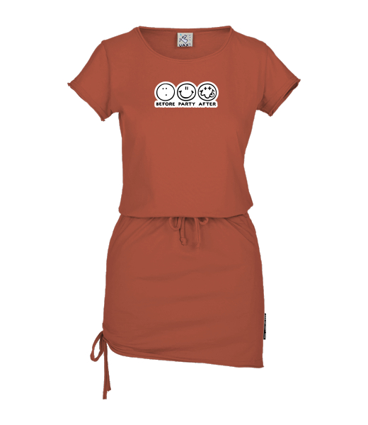 Women's dress URBAN with original prints for woman with design 1120 BEFORE PARTY AFTER in color TERRA