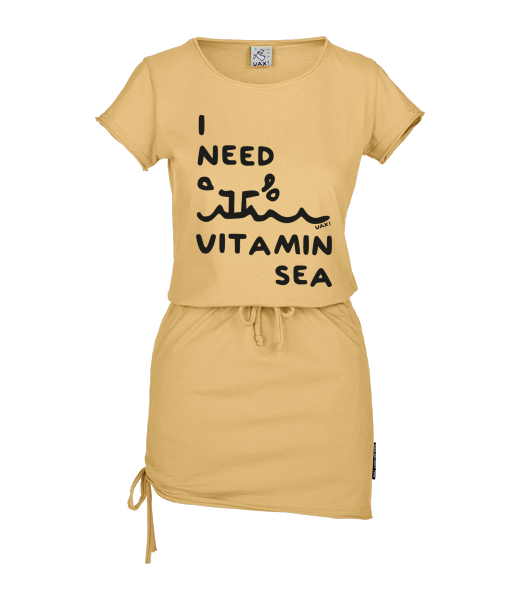 Women's dress URBAN with original prints for woman with design 1132 I NEED VITAMIN SEA in color MUSTARD