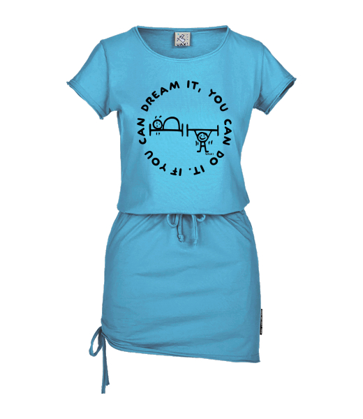 Women's dress URBAN with original prints for woman with design 1133 IF YOU CAN DREAM IT in color BLUE ATOLL