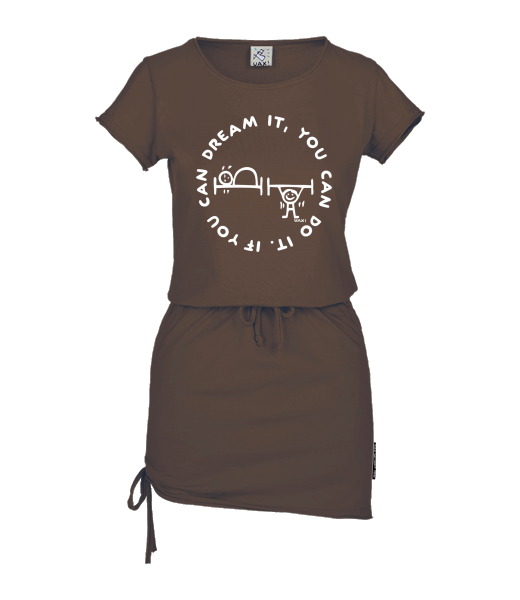 Women's dress URBAN with original prints for woman with design 1133 IF YOU CAN DREAM IT in color CHESTNUT