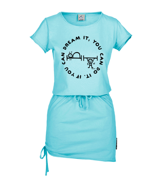 Women's dress URBAN with original prints for woman with design 1133 IF YOU CAN DREAM IT in color PASTEL BLUE