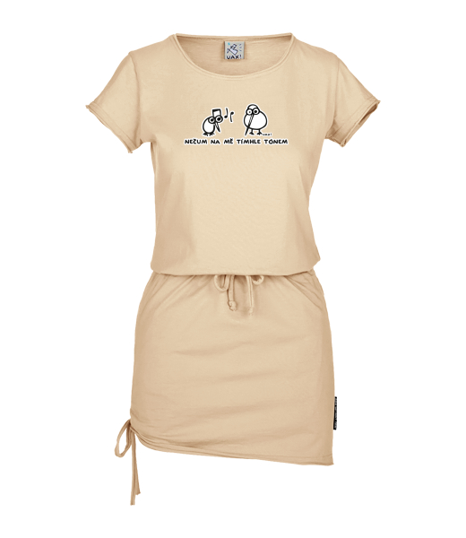 Women's dress URBAN with original prints for woman with design 1134 NEČUM TÍMHLE TÓNEM in color CARAMEL