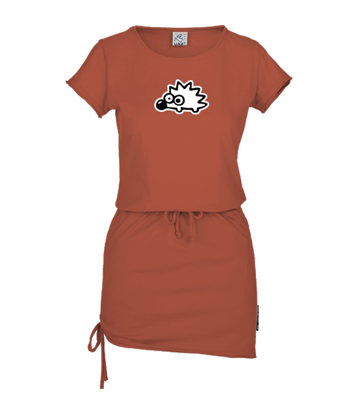 Women's dress URBAN with original prints for woman with design 1139 JEŽEK in color TERRA