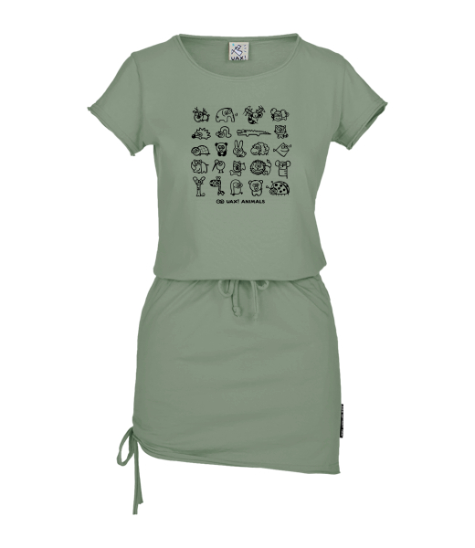 Women's dress URBAN with original prints for woman with design 1168 UAX! ANIMALS in color OLIVA