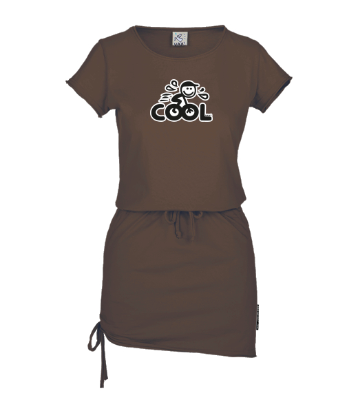 Women's dress URBAN with original prints for woman with design 1169 COOL CYCLIST in color CHESTNUT