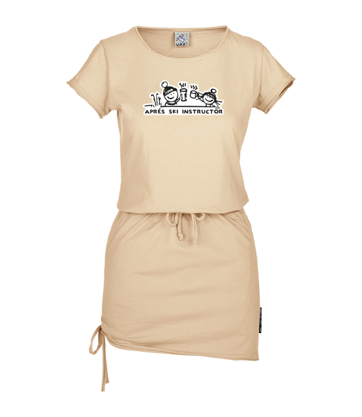 Women's dress URBAN with original prints for woman with design 1180 APRÉS SKI INSTRUCTOR in color CARAMEL