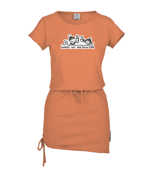 Women's dress URBAN with original prints for woman with design 1180 APRÉS SKI INSTRUCTOR in color MANDARIAN ORANGE