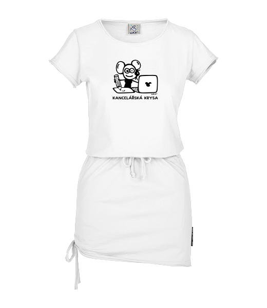 Women's dress URBAN with original prints for woman with design 1191 KANCELÁŘSKÁ KRYSA in color WHITE
