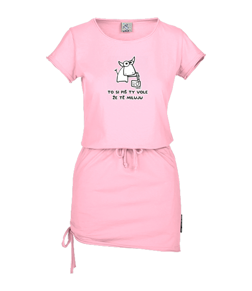 Women's dress URBAN with original prints for woman with design 1192 TO SI PIŠ TY VOLE ŽE TĚ MILUJU in color BABY PINK