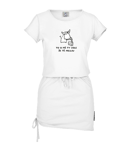 Women's dress URBAN with original prints for woman with design 1192 TO SI PIŠ TY VOLE ŽE TĚ MILUJU in color WHITE