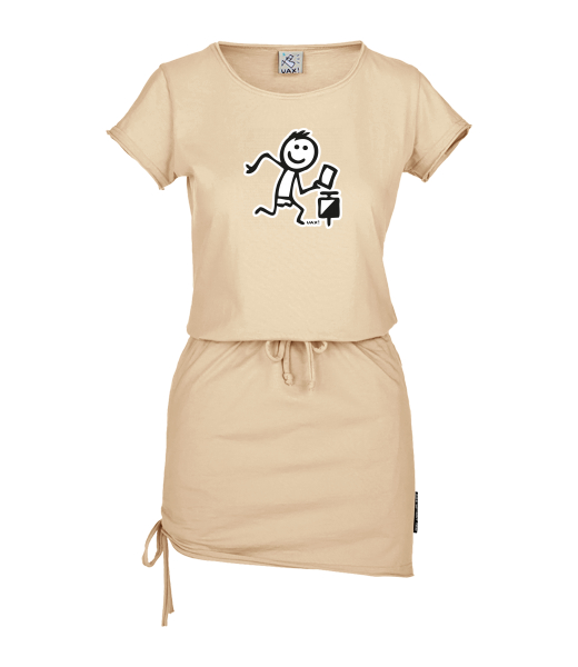Women's dress URBAN with original prints for woman with design 1198 ORIENTAČNÍ BĚH in color CARAMEL