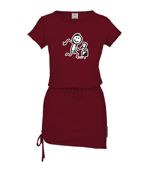 Women's dress URBAN with original prints for woman with design 1198 ORIENTAČNÍ BĚH in color DARK RED