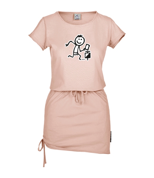 Women's dress URBAN with original prints for woman with design 1198 ORIENTAČNÍ BĚH in color PEACH