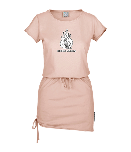 Women's dress URBAN with original prints for woman with design 1208 HOŘÍME LÁSKOU in color PEACH