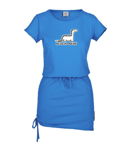 Women's dress URBAN with original prints for woman with design 1209 NEJSEM DNEŠNÍ in color CAPRI BLUE