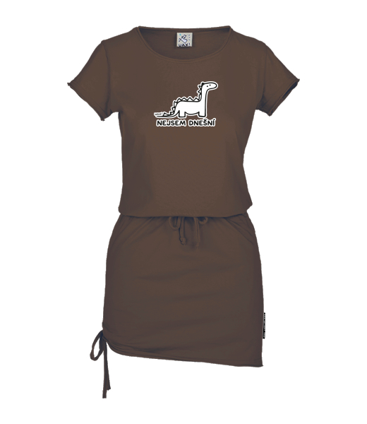 Women's dress URBAN with original prints for woman with design 1209 NEJSEM DNEŠNÍ in color CHESTNUT