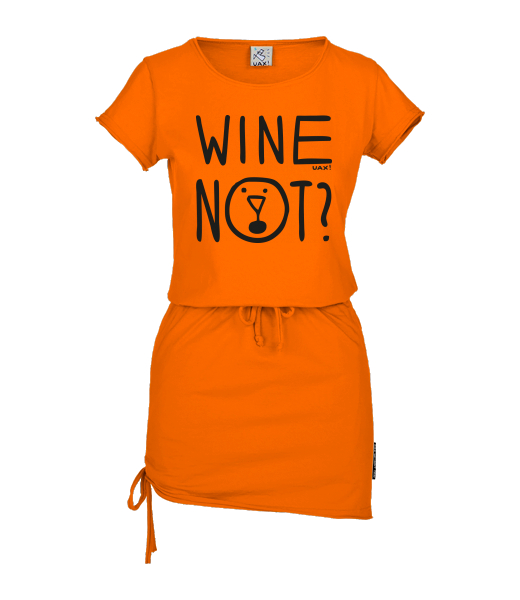 Women's dress URBAN with original prints for woman with design 1210 WINE NOT in color SIGNAL ORANGE