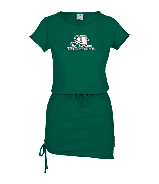 Women's dress URBAN with original prints for woman with design 1220 ŠTĚSTÍ JAKO PRASE in color UNIVERSITY GREEN