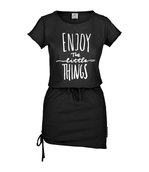 Women's dress URBAN with original prints for woman with design 1222 ENJOY THE LITTLE THINGS in color BLACK