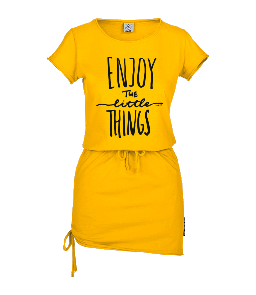 Women's dress URBAN with original prints for woman with design 1222 ENJOY THE LITTLE THINGS in color GOLDEN CREAM